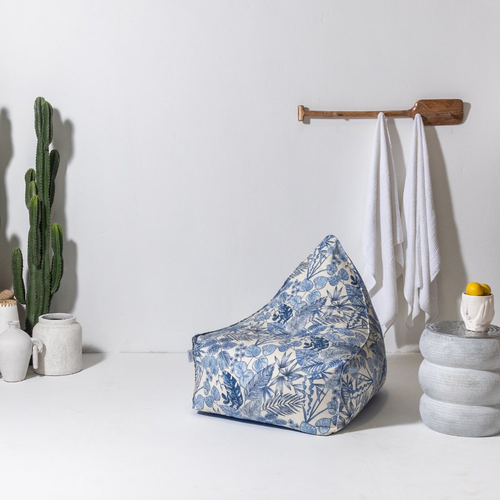 פוף בתפירה מותאמת אישית מבד פרמיום פרחוני, הפוף מלא בפתיתי פוליסטרן עמידים, בד פרמיום המתאים לתנאי חוץ